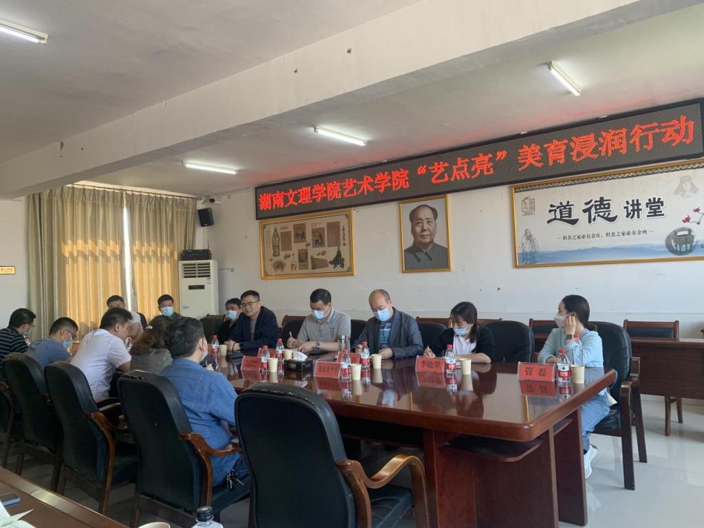 本网讯(通讯员 梁光焰)5月5日上午,艺术学院“艺点亮”美育浸润行动小组在院长梁光焰、书记田正友的带领下,来到青林回维乡政府召开对接推进会。青林回维乡党委书记刘双全同志主持会议,美育浸润行动小组部分成员、青林中学和浯溪河中学两校校长以及相关负责同志参加了此次会议。