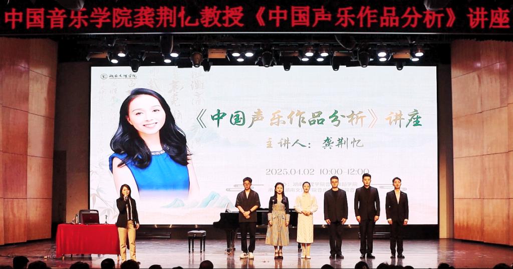 龚荆忆教授在《中国声乐作品分析》学术讲座中细致讲解了歌唱旋律、钢琴伴奏以及歌词分析等方面内容;在《中国声乐作品音乐会》中,龚教授特别设置了导聆环节,分类梳理作品脉络,帮助观众理解音乐作品的文化基因与当代转化。