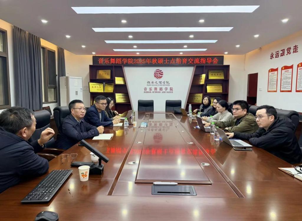 为积极推动湖南文理学院艺术学科建设,提升培养层次,促进跨学科深度融合,2025年11月3日,湖南文理学院音乐与舞蹈学院、美术与设计学院联合邀请湖南第一师范学院音乐与舞蹈学院原院长、博士生导师、二级教授,张应华教授来院指导,并于当日在艺术楼B栋104会议室,召开了“戏曲与曲艺方向硕士研究生点申报工作推进会”。会议取得了丰硕的研讨成果。