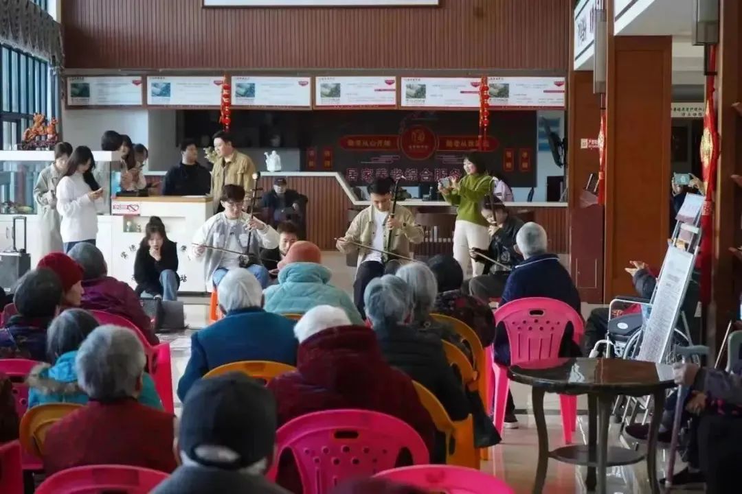 3月30日下午,为进一步弘扬雷锋精神,发扬尊老、爱老,敬老的中华民族传统美德,培养大学生的社会责任意识和奉献精神,音乐舞蹈学院党员师生自发组织了福寿颐康园养老院慰问演出活动。
